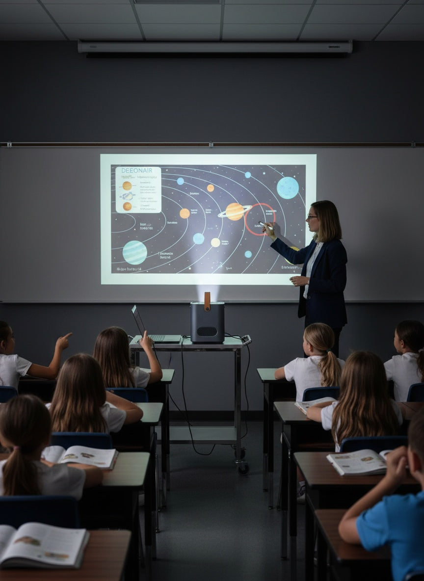 - Designed for long-term use, it boasts a powerful light source with an incredible lifespan of over 50,000 hours, reducing the need for frequent maintenance. The projector supports screen sizes ranging from 40 to 300 inches, adaptable for both small and large spaces with a throw distance from 1 to 5 meters. Thanks to its fully sealed optical engine, it prevents dust intrusion, maintaining image clarity over time. With support for Auto Keystone Correction, it aligns the image automatically for hassle-free setup.