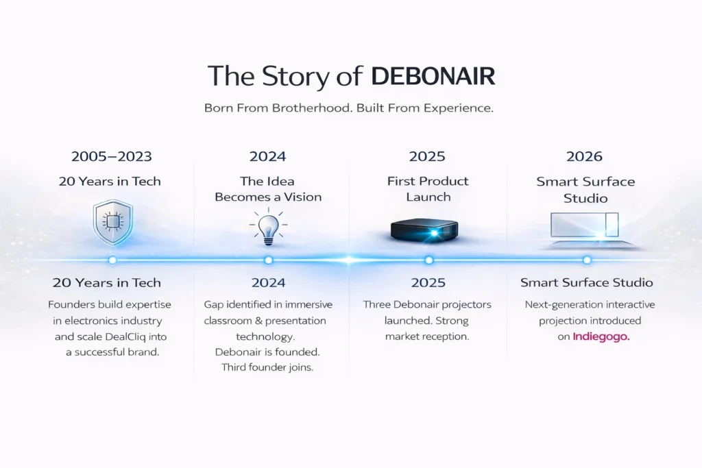 Debonair continues to build products and experiences designed for modern homes, classrooms, and workplaces.