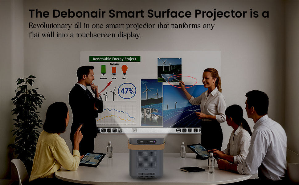 - Enjoy a cinematic experience with a giant projection size ranging from 40 to 300 inches and an adjustable throw distance of 1 to 5 meters. Whether you're in a small room or a large hall, the DEBONAIR projector adapts to your space seamlessly with minimal setup.