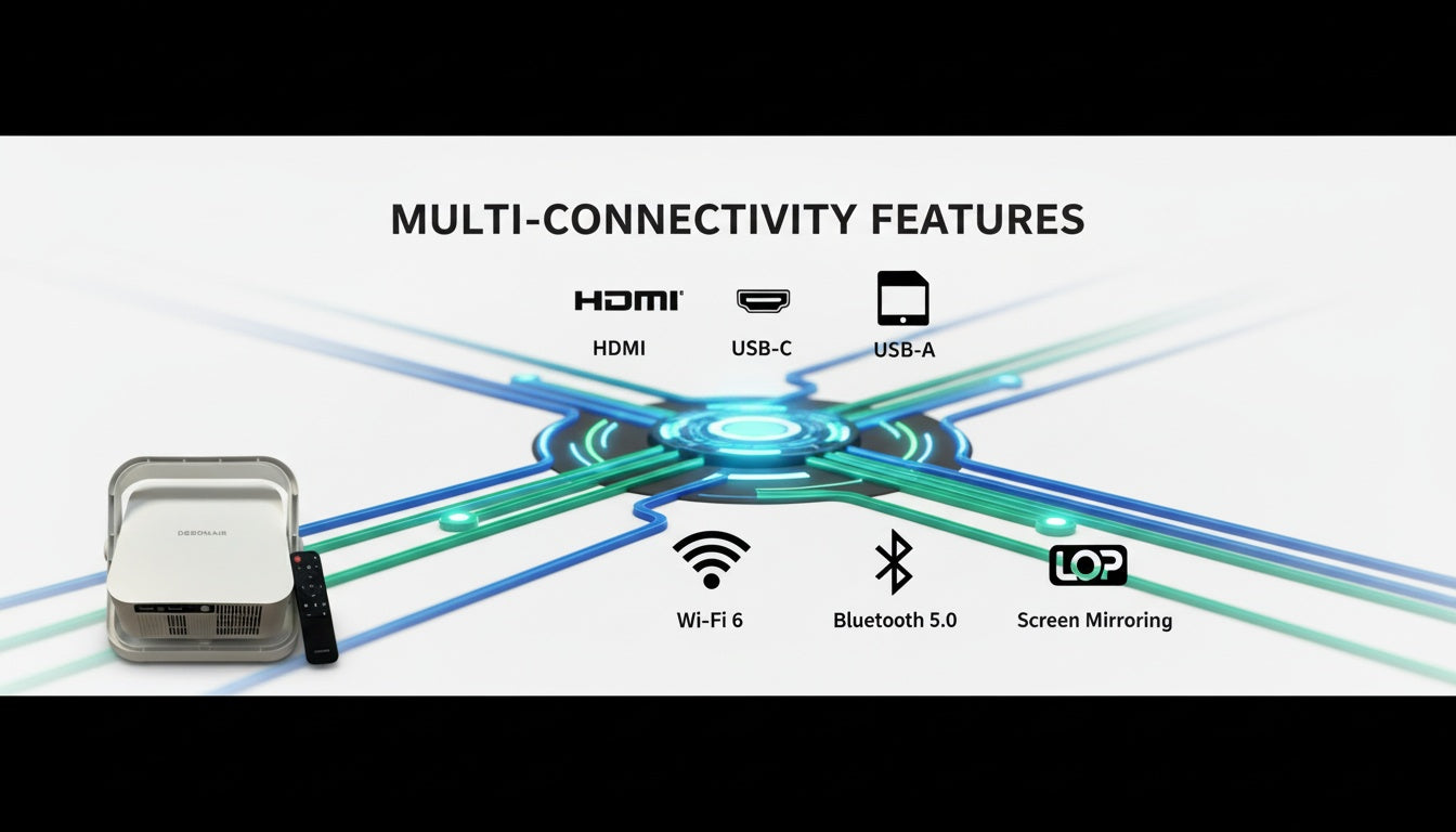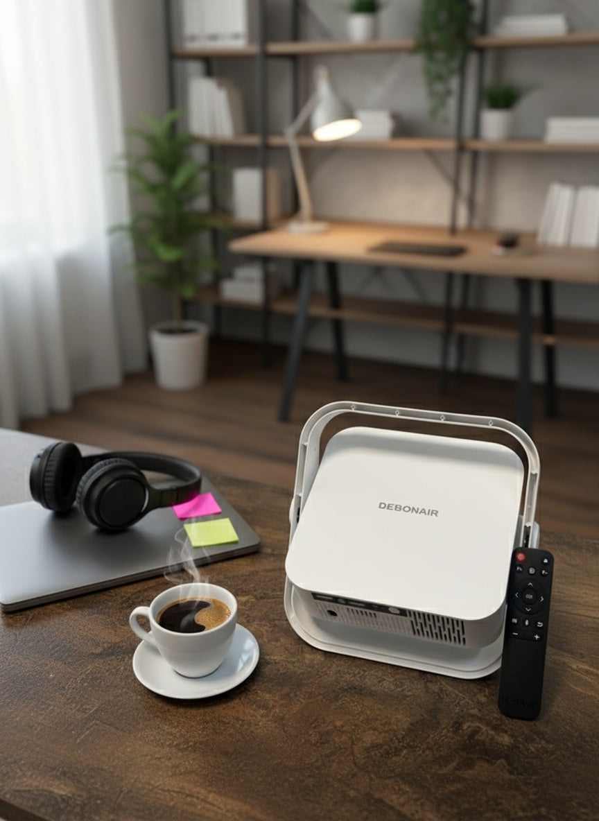 - Auto keystone correction automatically adjusts the image angle for a perfectly aligned screen, while the built-in 5W speaker delivers clear and balanced audio, eliminating the need for external sound systems in most scenarios